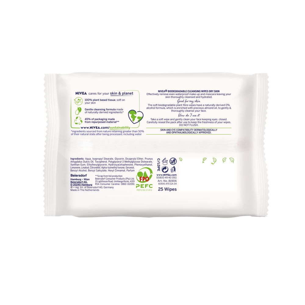 NIVEA Biodegradable Cleansing Wipes, Plant-based Face Wipes, 25 Wipes