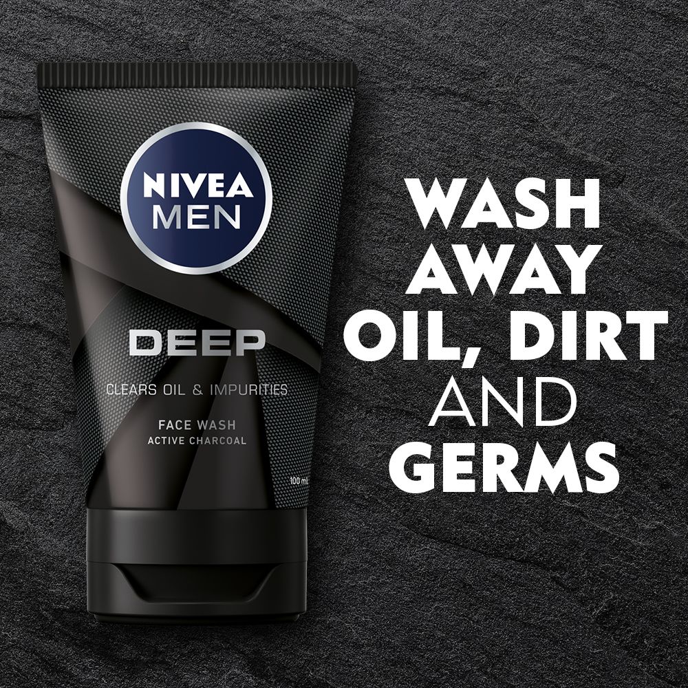 NIVEA MEN Deep Face Wash, with Active Charcoal, 100ml